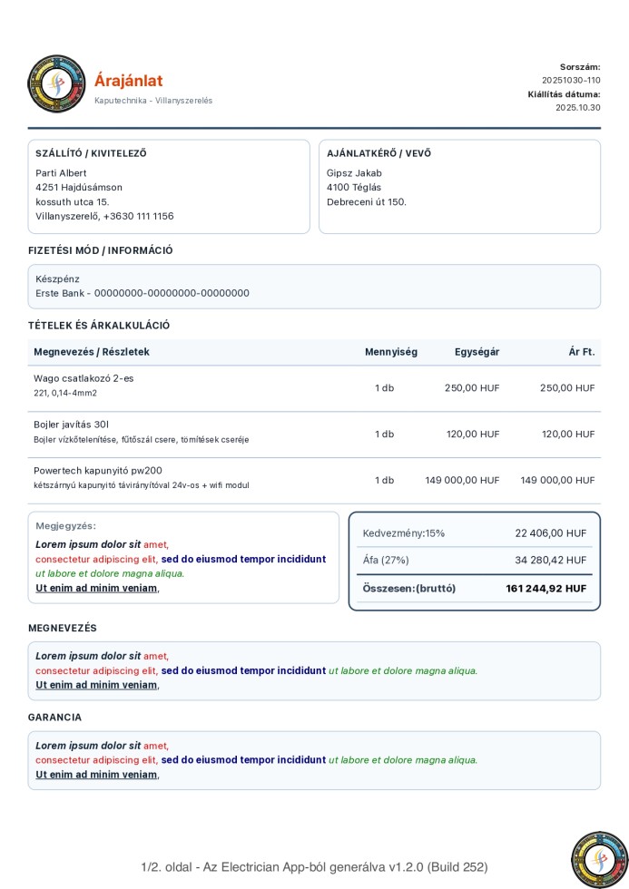 Villanyszerelő asszisztens 1.2.0 – Professzionális PDF-generálás új szinten!