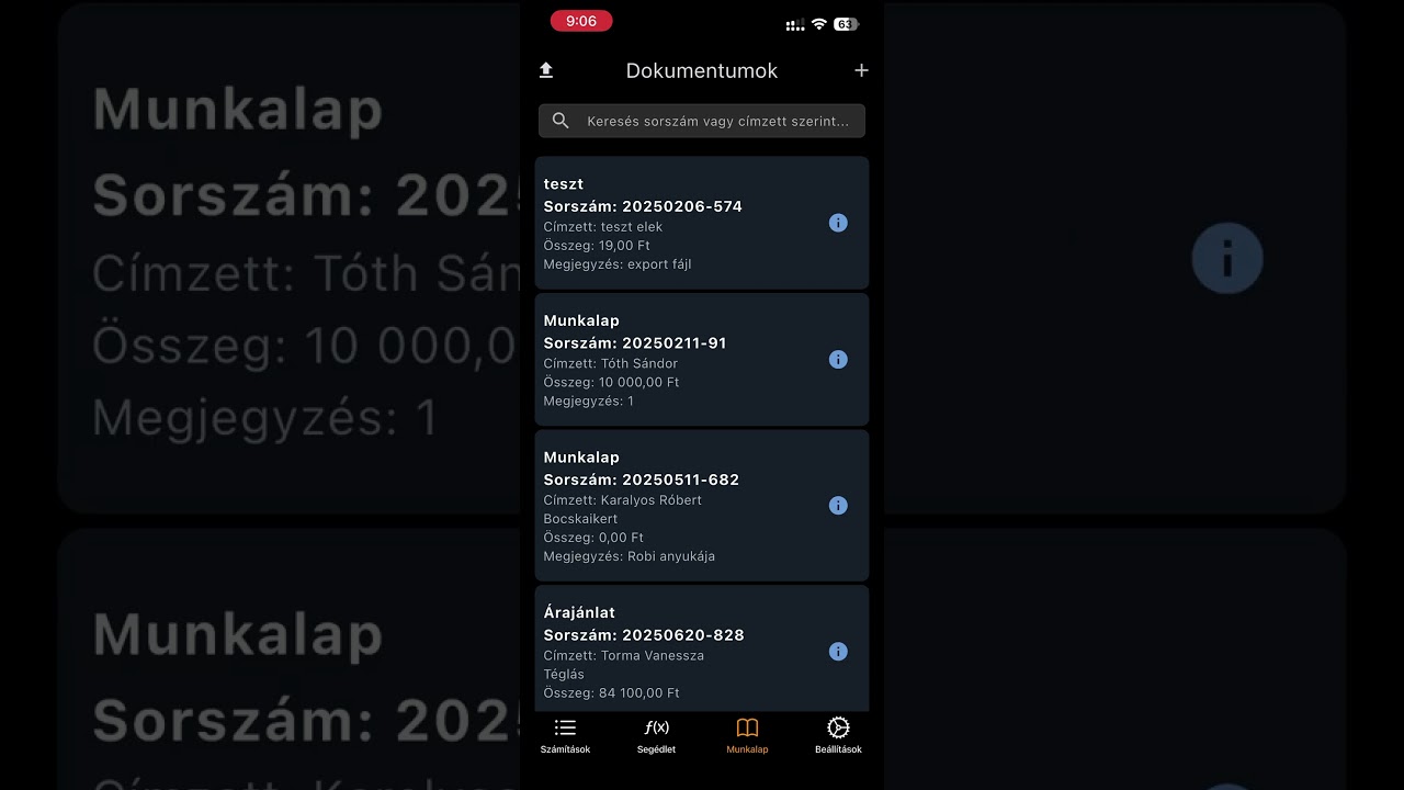 új funkció előre rögzített tételek a munkalap gyorsabb kitöltésére…